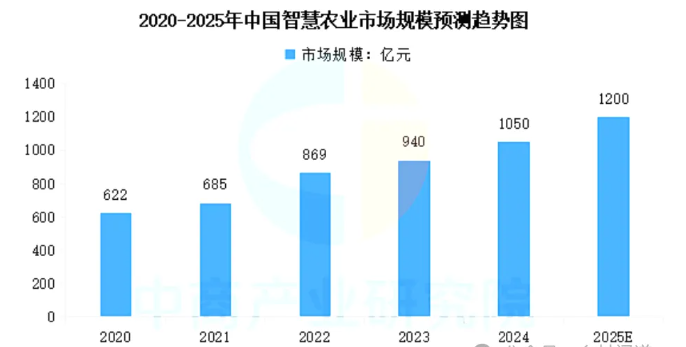 在全球智慧農(nóng)業(yè)市場(chǎng)的快速增長(zhǎng)中,中國(guó)也扮演著重要角色。中國(guó)作為農(nóng)業(yè)大國(guó),對(duì)智慧農(nóng)業(yè)技術(shù)的需求和應(yīng)用尤為迫切。政府和企業(yè)紛紛加大投入,推動(dòng)智慧農(nóng)業(yè)技術(shù)的研發(fā)和應(yīng)用。【鄉(xiāng)村聞道】認(rèn)為智慧農(nóng)業(yè)市場(chǎng)規(guī)模連年增長(zhǎng),2024年中國(guó)智慧農(nóng)業(yè)市場(chǎng)規(guī)模超千億元,達(dá)到約1050億元,預(yù)計(jì)2025年將達(dá)到1200億元。